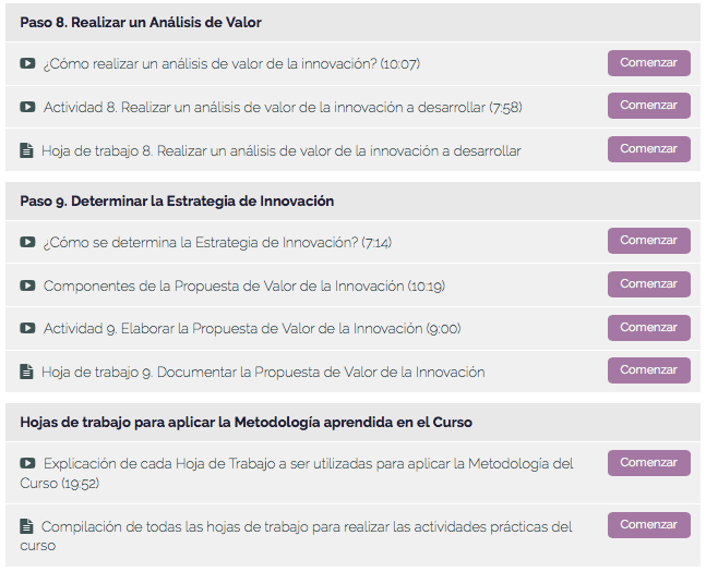 El taller es teórico práctico. Los primeros dos módulos te ayudarán a entender que es una innovación y a que se debe que sea tan difícil innovar para las empresas.